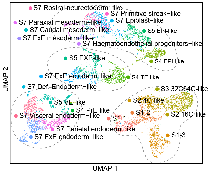 综上所述,本研究基于新型类全能干细胞成功构建了可在体外连续重现从合子基因组激活至原肠运动完成的类胚胎模型。该工作不仅建立了小鼠类全能干细胞的高效诱导新方法,也为在体外深入研究小鼠早期胚胎发育提供了全新平台,向利用早期干细胞构建完整生命个体的终极目标更进一步。