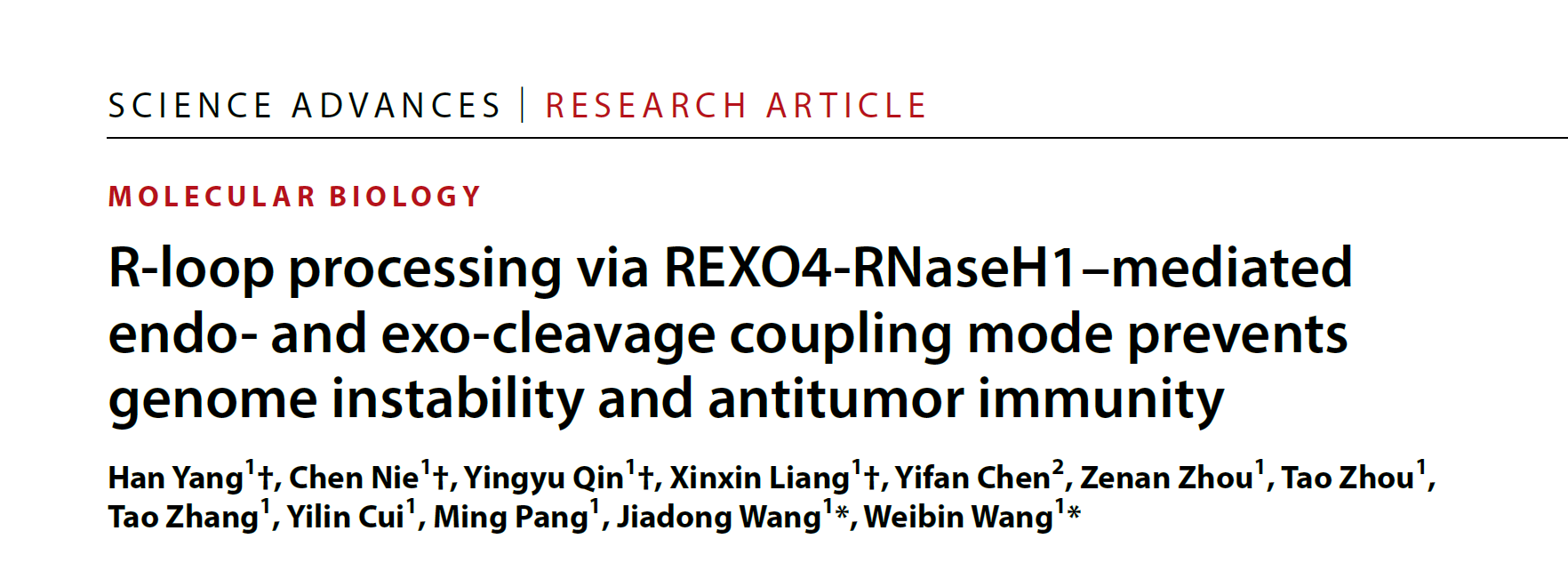 RNA-DNA杂交链/R-loop在转录、复制及DNA损伤修复等细胞过程中发挥重要生理功能,其代谢失衡会诱发基因组不稳定和肿瘤等疾病。然而,全基因组尺度上R-loop的普适、高效解除机制仍有待揭示。