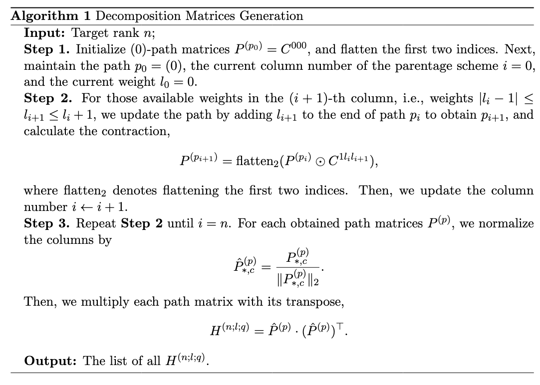 长期以来,高阶张量的不可约分解是机器学习、理论化学和理论物理领域的一大难题。从Coope等人在1965年实现三阶分解开始,将尽60年后,Bonvicini在2024年才刚刚在五阶以内取得显式分解,高阶分解的缺失严重限制了高阶EGNNs的构建与应用。此次团队巧用父系方案(parentage scheme)对Clebsch-Gordan张量进行链式缩并,提出了一种全新的“路径矩阵(path matrices)”方法。该方法依靠球谐空间与笛卡尔空间的同构关系,利用路径矩阵将笛卡尔张量转到球谐空间完成分解,成功突破了技术瓶颈,将分解能力从现有的五阶提升至九阶,在计算效率和可操作性上实现了大幅飞跃。这一突破为高阶等变神经网络的设计开辟了新的可能,也为物理和化学中的对称性分析提供了强有力的工具。