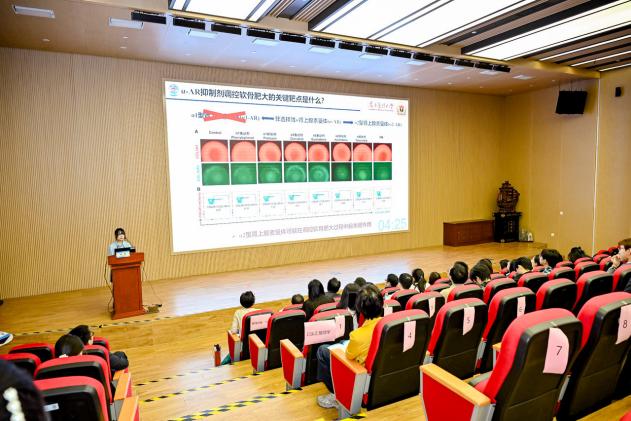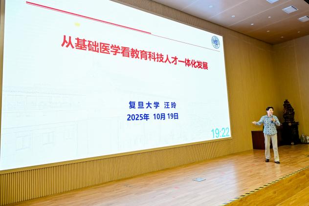 主旨报告环节,我院王韵教授、复旦大学克卿书院院长汪玲教授分别以《神经系统信号通路的研究——疼痛、神经发育与损伤修复的三十年探索》和《从基础医学看教育科技人才一体化发展》为题,分享了对医学前沿研究、医学教育与科研人才培养的见解。