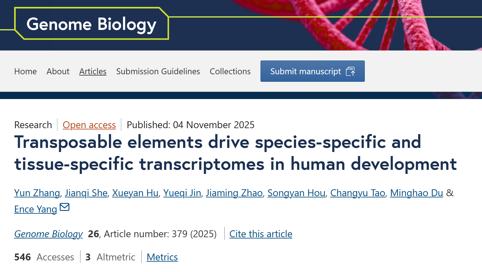 2025年11月4日,北京大学基础医学院杨恩策团队在Genome Biology发表题为Transposable elements drive species-specific and tissue-specific transcriptomes in human development的论文。文章系统整合了多种类型的转录组学数据,开发了高精度识别TE起始转录本的生物信息学工具和流程,通过系统性识别人体生理组织部位和胚胎干细胞的TE起始转录本,揭示了TE作为演化元件池,在长期演化过程中通过转座事件为基因提供了广泛的可变转录起始位点,并通过其具有的多样的转录因子结合位点,组织特异性的塑造了灵长类的基因表达网络,为同源基因转录分化的精细调控提供了新见解。