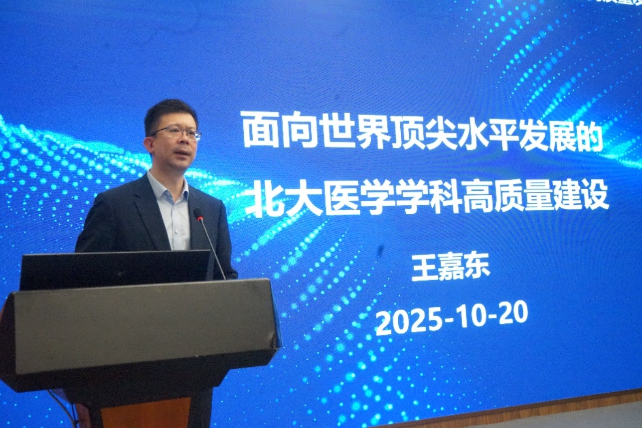 医学部副主任王嘉东教授作题为“面向世界顶尖水平发展的北大医学学科高质量建设”主旨报告,他从北大医学整体态势与核心重点工作、发展瓶颈及世界顶尖医学院校发展规律分析、突破路径与未来规划三大维度深入阐释了北大医学的发展重点与整体布局,系统回顾了北大医学在“十四五”期间取得的工作成效,并对“十五五”期间的科技创新工作进行了展望与部署。他指出基础医学三个核心突破点,并强调要依托学科优势方向进一步推动核心突破,带动顶尖学科方向的发展,他要求学院始终锚定“建设中国特色、世界一流学科”的总体目标,力争到2030年使基础医学一级学科整体发展水平进入世界一流前列,努力建设一批能够引领人类医学知识前沿发展的顶尖学科,为健康中国战略和人类健康事业贡献北大基础医学的智慧和力量。